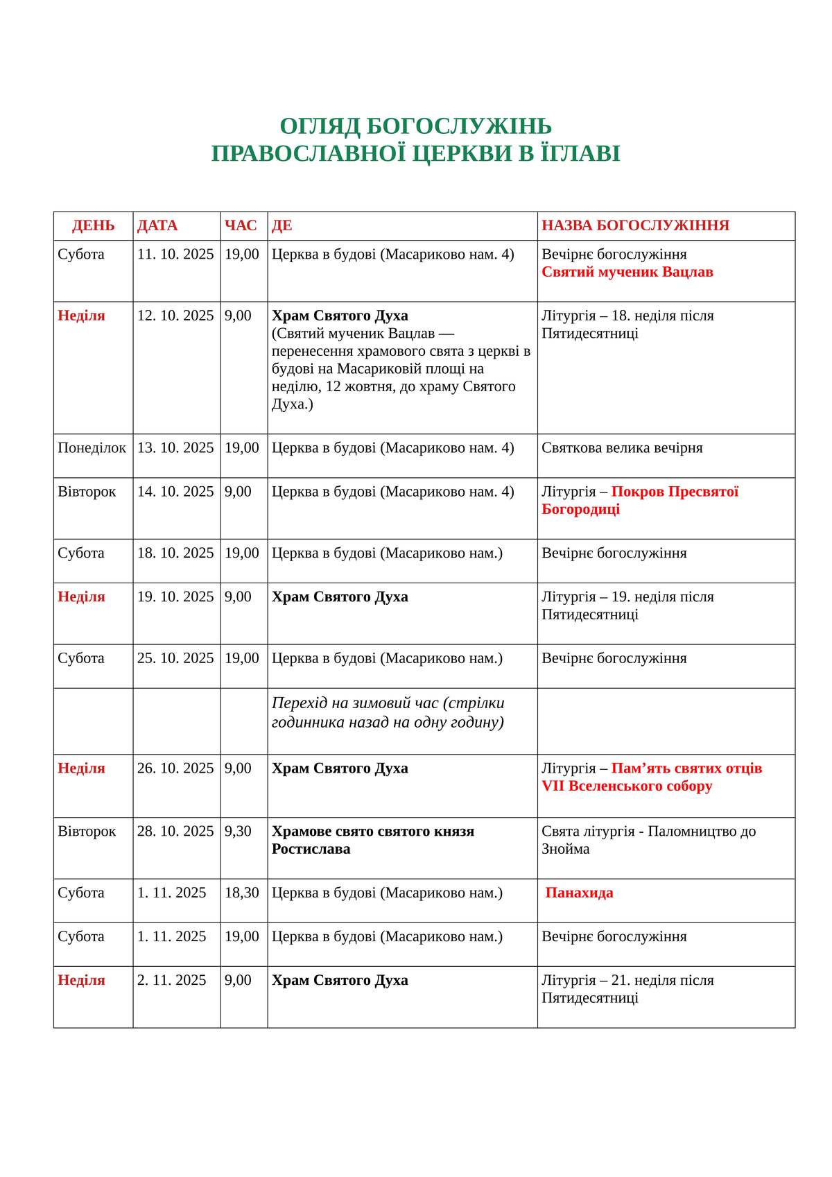 Podrobný rozpis bohoslužeb UKRAJINSKY: Seznam bohoslužeb v ukrajinštině